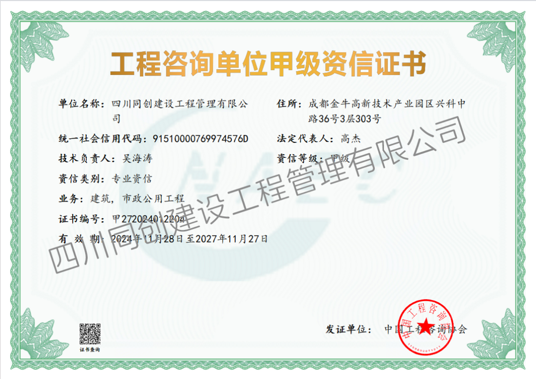 工程咨询单位甲级资信证书