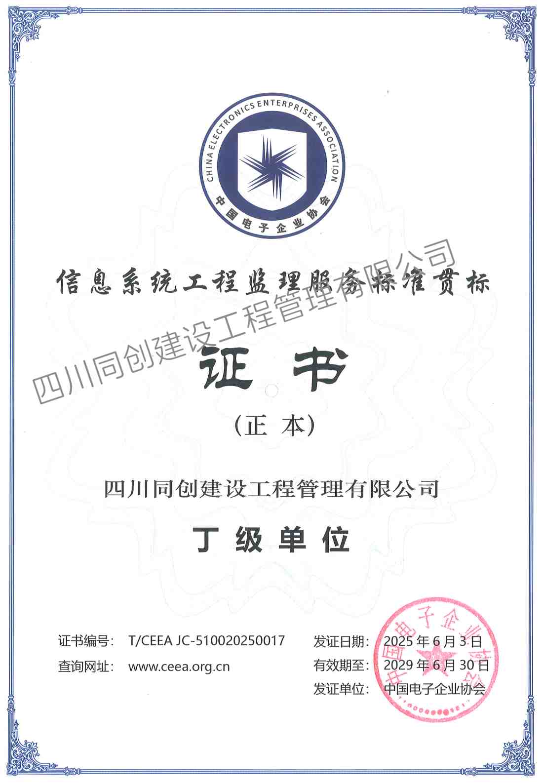 信息系统工程监理丁级单位证书