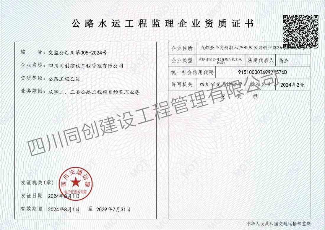 公路工程监理乙级资质证书